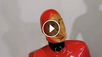Standing Bondage? All inclusive latex coat; restricted breathing in various ways; struggling and alm