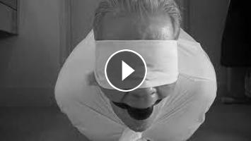 a hot guy is hogtied, ball gagged and blindfolded and hung by his shirt collar to moan and drool, helpless and humiliated.