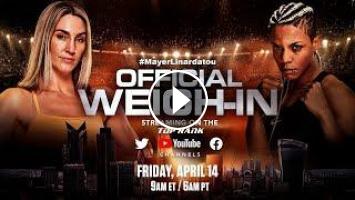 Watch the official weigh-in for the next Top Rank on ESPN+ show featuring #mikaelamayer and #joejoyce and more fighters on the card