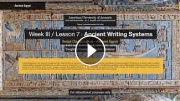 Recording of the class on script classification and Egyptian hieroglyphs. American University of Armenia / College of Humanities and Social Sciences/ English & Communications Program/ Spring 2021