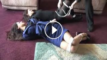 Lady kidnapped tied with ropes and mouth bound duct taped.