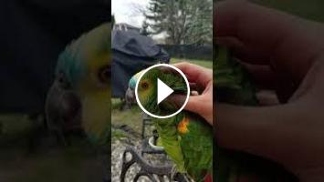 Blue Fronted Amazon Scarlett getting to accept her new family slowly, but surely.